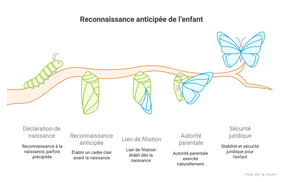 La différence clé avec la simple déclaration de naissance ? La reconnaissance à la naissance intervient sur le fait, parfois dans la précipitation. À l’inverse, la reconnaissance anticipée pose un cadre clair bien avant l’arrivée de l’enfant, ce qui enlève une belle épine du pied le jour J !